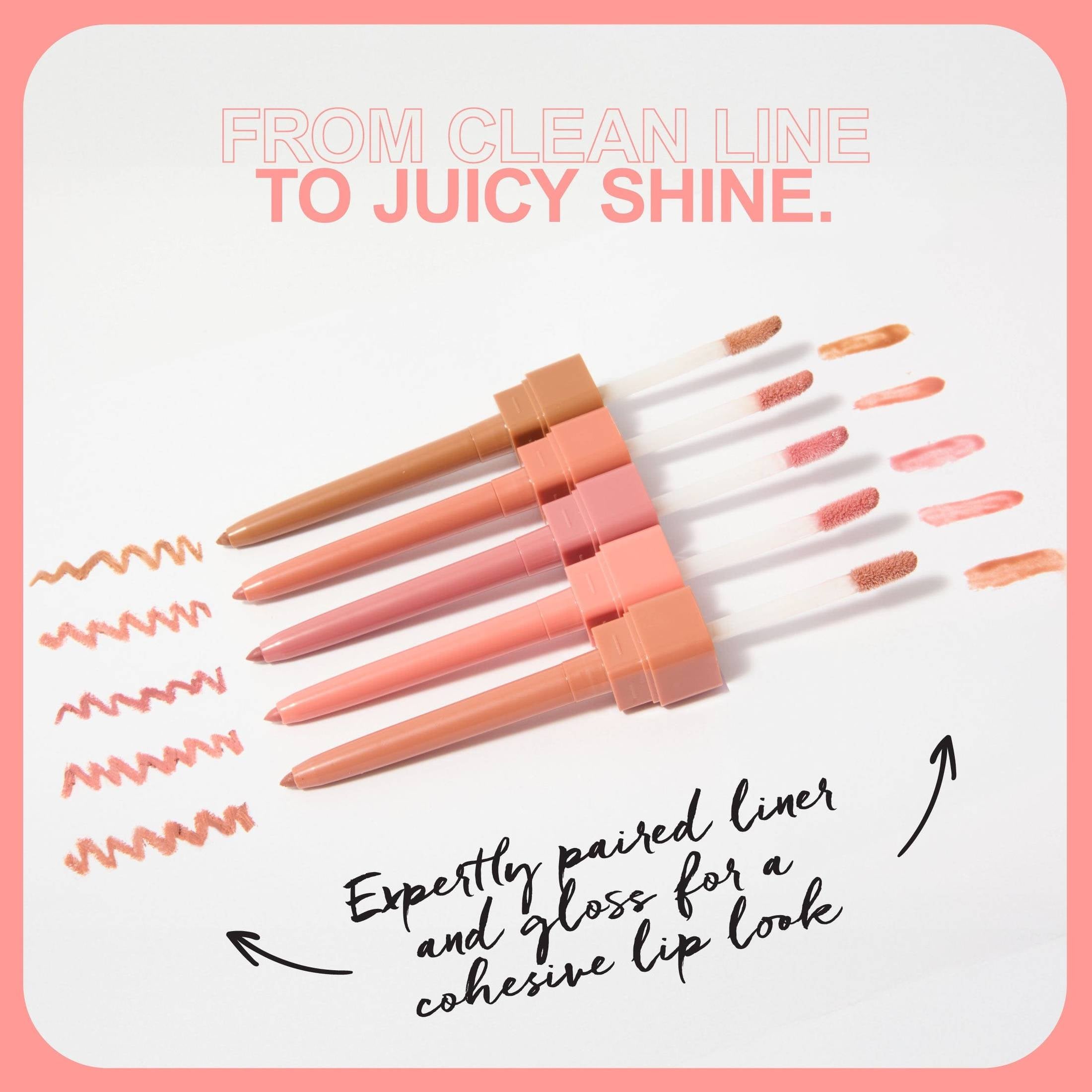 This dual-ended lip liner-lip gloss is your perfect on-the-go lip companion. The creamy, blendable lip liner applies smoothly to the lips without tugging, adding natural definition. Its convenient wind-up design eliminates the need for a sharpener, and its pointed end helps achieve a precise application. The lipliner formula leaves a matte, velvet finish to the lips.