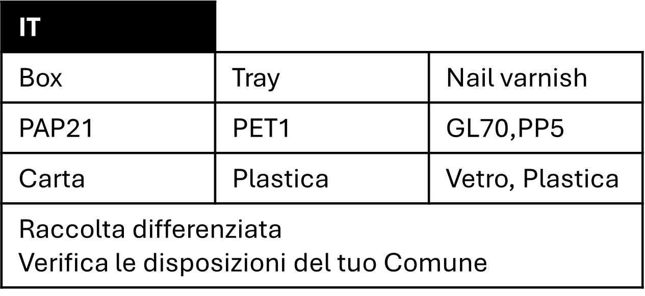 WHITE ETHYL ACETATE, BUTYL ACETATE, NITROCELLULOSE, ACETYL TRIBUTYL CITRATE, ADIPIC ACID/NEOPENTYL GLYCOL/TRIMELLITIC ANHYDRIDE COPOLYMER, ISOPROPYL ALCOHOL, STEARALKONIUM BENTONITE, DIACETONE ALCOHOL, PHTHALIC ANHYDRIDE/TRIMELLITIC ANHYDRIDE/GLYCOLS COPOLYMER, SUCROSE ACETATE ISOBUTYRATE, SILICA, ALUMINUM HYDROXIDE, TRIETHOXYCAPRYLYLSILANE, PHOSPHORIC ACID, CI 77891 (TITANIUM DIOXIDE) UNICORN TEARS ETHYL ACETATE, BUTYL ACETATE, NITROCELLULOSE, ADIPIC ACID/NEOPENTYL GLYCOL/TRIMELLITIC ANHYDRIDE COPOLYMER, ACETYL TRIBUTYL CITRATE, ISOPROPYL ALCOHOL, STEARALKONIUM BENTONITE, MICA, DIACETONE ALCOHOL, SUCROSE ACETATE ISOBUTYRATE, SILICA, PHTHALIC ANHYDRIDE/TRIMELLITIC ANHYDRIDE/GLYCOLS COPOLYMER, PHOSPHORIC ACID, PENTAERYTHRITYL TETRAISOSTEARATE, CI 77891 (TITANIUM DIOXIDE), CI 15880 (RED 34 LAKE), CI 42090 (BLUE 1 LAKE) CHAMPERS ETHYL ACETATE, BUTYL ACETATE, NITROCELLULOSE, ADIPIC ACID/NEOPENTYL GLYCOL/TRIMELLITIC ANHYDRIDE COPOLYMER, ACETYL TRIBUTYL CITRATE, ISOPROPYL ALCOHOL, STEARALKONIUM BENTONITE, DIACETONE ALCOHOL, SUCROSE ACETATE ISOBUTYRATE, SILICA, PHTHALIC ANHYDRIDE/TRIMELLITIC ANHYDRIDE/GLYCOLS COPOLYMER, SYNTHETIC FLUORPHLOGOPITE, ALUMINUM HYDROXIDE, TRIETHOXYCAPRYLYLSILANE, PHOSPHORIC ACID, TIN OXIDE, CI 77891 (TITANIUM DIOXIDE), CI 77499 (IRON OXIDES), CI 77491 (IRON OXIDES), CI 19140 (YELLOW 5 LAKE) CAFE CREME & NEPTUNE ETHYL ACETATE, BUTYL ACETATE, NITROCELLULOSE, ACETYL TRIBUTYL CITRATE, ADIPIC ACID/NEOPENTYL GLYCOL/TRIMELLITIC ANHYDRIDE COPOLYMER, ISOPROPYL ALCOHOL, STEARALKONIUM BENTONITE, PHTHALIC ANHYDRIDE/TRIMELLITIC ANHYDRIDE/GLYCOLS COPOLYMER, DIACETONE ALCOHOL, SUCROSE ACETATE ISOBUTYRATE, SILICA, ALUMINUM HYDROXIDE, TRIETHOXYCAPRYLYLSILANE, PHOSPHORIC ACID, PENTAERYTHRITYL TETRAISOSTEARATE, MAY CONTAIN / PEUT CONTENIR [+/- CI 42090 (BLUE 1 LAKE), CI 19140 (YELLOW 5 LAKE), CI 15880 (RED 34 LAKE), CI 77891 (TITANIUM DIOXIDE), CI 77499 (IRON OXIDES), CI 77491 (IRON OXIDES)] PINK CLAY ETHYL ACETATE, BUTYL ACETATE, NITROCELLULOSE, ACETYL TRIBUTYL CITRATE, ADIPIC ACID/NEOPENTYL GLYCOL/TRIMELLITIC ANHYDRIDE COPOLYMER, ISOPROPYL ALCOHOL, STEARALKONIUM BENTONITE, DIACETONE ALCOHOL, PHTHALIC ANHYDRIDE/TRIMELLITIC ANHYDRIDE/GLYCOLS COPOLYMER, SUCROSE ACETATE ISOBUTYRATE, SILICA, BARIUM SULFATE, TRIETHOXYCAPRYLYLSILANE, PHOSPHORIC ACID, ALUMINUM HYDROXIDE, CI 77891 (TITANIUM DIOXIDE), CI 77499 (IRON OXIDES), CI 15850 (RED 6 LAKE), CI 19140 (YELLOW 5 LAKE) PINK PEARL & TURKISH ROSE ETHYL ACETATE, BUTYL ACETATE, NITROCELLULOSE, ACETYL TRIBUTYL CITRATE, ADIPIC ACID/NEOPENTYL GLYCOL/TRIMELLITIC ANHYDRIDE COPOLYMER, ISOPROPYL ALCOHOL, STEARALKONIUM BENTONITE, PHTHALIC ANHYDRIDE/TRIMELLITIC ANHYDRIDE/GLYCOLS COPOLYMER, ALUMINUM HYDROXIDE, BARIUM SULFATE, DIACETONE ALCOHOL, PENTAERYTHRITYL TETRAISOSTEARATE, PHOSPHORIC ACID, SILICA, SUCROSE ACETATE ISOBUTYRATE, TRIETHOXYCAPRYLYLSILANE, MAY CONTAIN / PEUT CONTENIR [+/- CI 77499 (IRON OXIDES), CI 77491 (IRON OXIDES), CI 77891 (TITANIUM DIOXIDE), CI 15880 (RED 34 LAKE), CI 15850 (RED 6 LAKE)] MARSHMALLOW ETHYL ACETATE, BUTYL ACETATE, NITROCELLULOSE, ACETYL TRIBUTYL CITRATE, ADIPIC ACID/NEOPENTYL GLYCOL/TRIMELLITIC ANHYDRIDE COPOLYMER, ISOPROPYL ALCOHOL, STEARALKONIUM BENTONITE, ACRYLATES COPOLYMER, ALUMINUM HYDROXIDE, DIACETONE ALCOHOL, PENTAERYTHRITYL TETRAISOSTEARATE, PHOSPHORIC ACID, PHTHALIC ANHYDRIDE/TRIMELLITIC ANHYDRIDE/GLYCOLS COPOLYMER, SILICA, SUCROSE ACETATE ISOBUTYRATE, TRIETHOXYCAPRYLYLSILANE, CI 77891 (TITANIUM DIOXIDE), CI 15880 (RED 34 LAKE), CI 77266 (BLACK 2) (NANO) MOONSHINE ETHYL ACETATE, BUTYL ACETATE, NITROCELLULOSE, ADIPIC ACID/NEOPENTYL GLYCOL/TRIMELLITIC ANHYDRIDE COPOLYMER, ACETYL TRIBUTYL CITRATE, ISOPROPYL ALCOHOL, CALCIUM ALUMINUM BOROSILICATE, DIACETONE ALCOHOL, SUCROSE ACETATE ISOBUTYRATE, PHTHALIC ANHYDRIDE/TRIMELLITIC ANHYDRIDE/GLYCOLS COPOLYMER, TRIETHOXYCAPRYLYLSILANE, PHOSPHORIC ACID, PENTAERYTHRITYL TETRAISOSTEARATE, ALUMINUM HYDROXIDE, TIN OXIDE, CI 77891 (TITANIUM DIOXIDE), CI 42090 (BLUE 1 LAKE), CI 15880 (RED 34 LAKE) HEART THROB ETHYL ACETATE, BUTYL ACETATE, NITROCELLULOSE, ADIPIC ACID/NEOPENTYL GLYCOL/TRIMELLITIC ANHYDRIDE COPOLYMER, ACETYL TRIBUTYL CITRATE, ISOPROPYL ALCOHOL, STEARALKONIUM BENTONITE, DIACETONE ALCOHOL, PHTHALIC ANHYDRIDE/TRIMELLITIC ANHYDRIDE/GLYCOLS COPOLYMER, SUCROSE ACETATE ISOBUTYRATE, SILICA, BARIUM SULFATE, ACRYLATES COPOLYMER, PENTAERYTHRITYL TETRAISOSTEARATE, ALUMINUM HYDROXIDE, TRIETHOXYCAPRYLYLSILANE, PHOSPHORIC ACID, CI 77891 (TITANIUM DIOXIDE), CI 15880 (RED 34 LAKE), CI 15850 (RED 6 LAKE), CI 77266 (BLACK 2) (NANO) BISOUS ETHYL ACETATE, BUTYL ACETATE, NITROCELLULOSE, ACETYL TRIBUTYL CITRATE, ADIPIC ACID/NEOPENTYL GLYCOL/TRIMELLITIC ANHYDRIDE COPOLYMER, ISOPROPYL ALCOHOL, STEARALKONIUM BENTONITE, CALCIUM ALUMINUM BOROSILICATE, DIACETONE ALCOHOL, SYNTHETIC FLUORPHLOGOPITE, SILICA, SILICA DIMETHYL SILYLATE, SUCROSE ACETATE ISOBUTYRATE, PHTHALIC ANHYDRIDE/TRIMELLITIC ANHYDRIDE/GLYCOLS COPOLYMER, TIN OXIDE, BARIUM SULFATE, PHOSPHORIC ACID, CI 77891 (TITANIUM DIOXIDE), CI 77499 (IRON OXIDES), CI 15850 (RED 6 LAKE) LAGOON ETHYL ACETATE, BUTYL ACETATE, NITROCELLULOSE, ACETYL TRIBUTYL CITRATE, ADIPIC ACID/NEOPENTYL GLYCOL/TRIMELLITIC ANHYDRIDE COPOLYMER, ISOPROPYL ALCOHOL, SYNTHETIC FLUORPHLOGOPITE, STEARALKONIUM BENTONITE, DIACETONE ALCOHOL, PHTHALIC ANHYDRIDE/TRIMELLITIC ANHYDRIDE/GLYCOLS COPOLYMER, SUCROSE ACETATE ISOBUTYRATE, SILICA, TIN OXIDE, PHOSPHORIC ACID, CI 77891 (TITANIUM DIOXIDE), CI 42090 (BLUE 1 LAKE), CI 19140 (YELLOW 5 LAKE) VESPER & CUPCAKE ETHYL ACETATE, BUTYL ACETATE, NITROCELLULOSE, ACETYL TRIBUTYL CITRATE, ADIPIC ACID/NEOPENTYL GLYCOL/TRIMELLITIC ANHYDRIDE COPOLYMER, ISOPROPYL ALCOHOL, STEARALKONIUM BENTONITE, DIACETONE ALCOHOL, PHTHALIC ANHYDRIDE/TRIMELLITIC ANHYDRIDE/GLYCOLS COPOLYMER, SUCROSE ACETATE ISOBUTYRATE, SILICA, ALUMINUM HYDROXIDE, TRIETHOXYCAPRYLYLSILANE, TRIETHOXYCAPRYLYLSILANE, PENTAERYTHRITYL TETRAISOSTEARATE, MAY CONTAIN / PEUT CONTENIR [+/- CI 42090 (BLUE 1 LAKE), CI 77007 (ULTRAMARINES), CI 77891 (TITANIUM DIOXIDE), CI 15880 (RED 34 